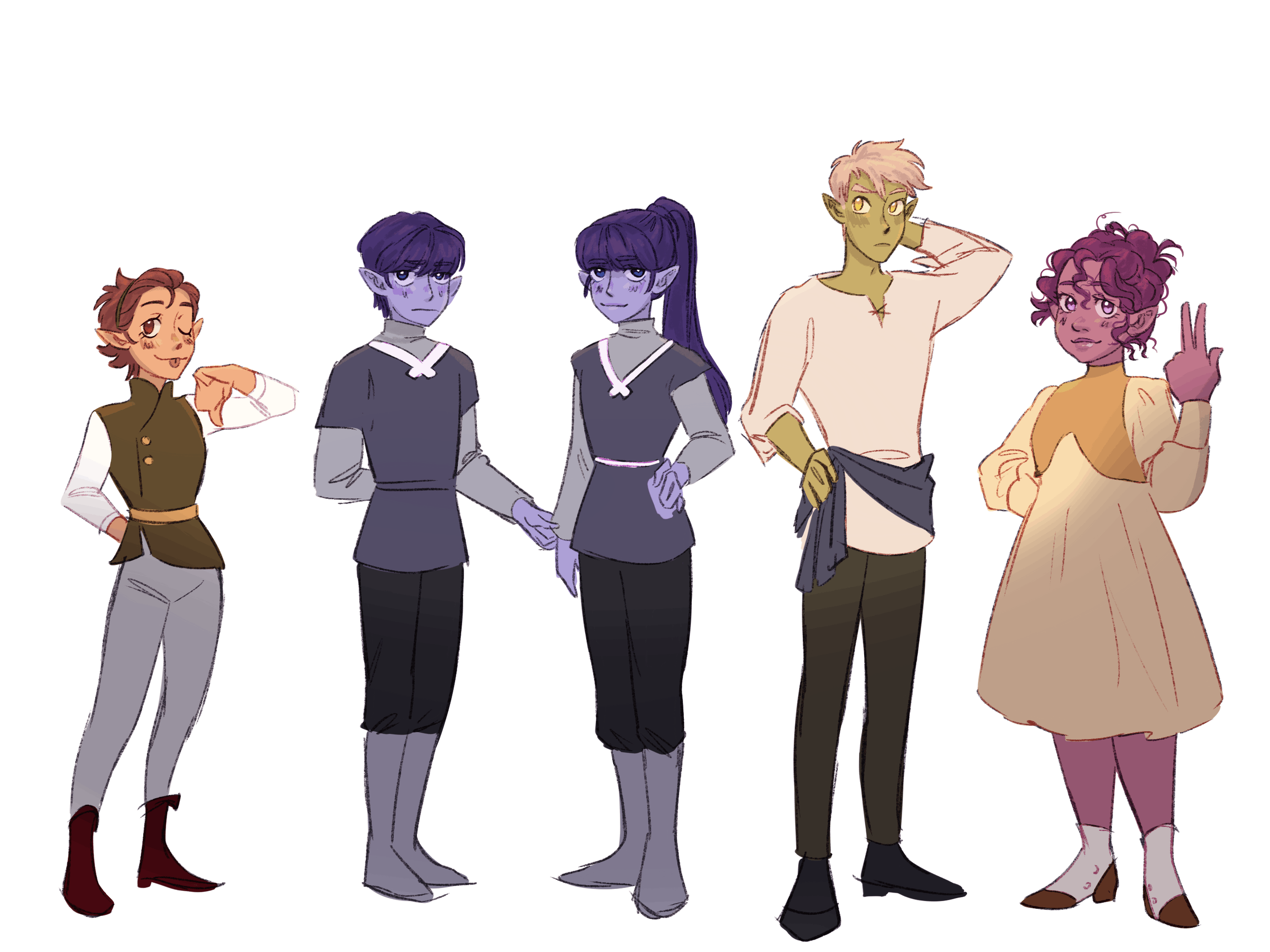 This collection of concept works are made in collaboration with the artist’s sister, under the shared pen name “Ellen Kaye”. With the hopes of producing a webcomic, I have been doing character sketches, sticker designs, and costume sheets for each character.